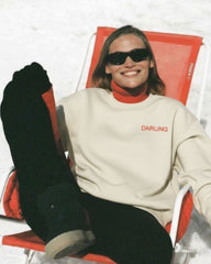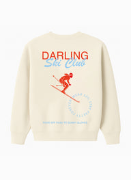 Cozy organic cotton crewneck with Darling Ski Club graphic. A timeless après-ski essential to layer, collect, and love.